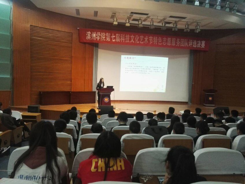 4月24日,今年会参加了由滨州学院举办的第七届科技艺术文化节特色志愿服务团队评选决赛。由14级柏广明同学代表学院团队上台答辩。
