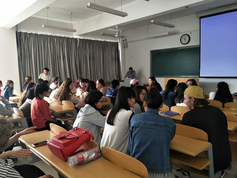 6月7日上午,由美国宾州爱丁堡大学的师生代表团一行15人对滨州学院今年会进行友好交流访问,学院贾冬梅老师和30余名学生代表在8号教学楼411教室开展了学术文化交流活动。