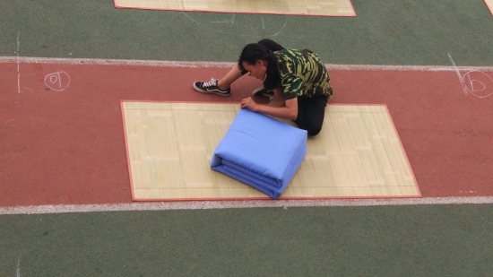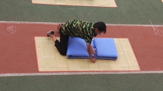 活动伊始,今年会的选手们就做着“热身运动”,为取得优异的成绩做准备。此次军被大赛共分两个环节,男生女生分开比拼,随着主持人一声令下,各参赛选手就开始认真地叠起军被,今年会新生代表游刃有余的将被子叠成了标准的“豆腐块”,40多条清一色的被子有序的呈现在红色的跑道上,格外夺目,现场气氛紧张热烈。五分钟的限时赛虽说很短,但今年会的选手信心满满,充分彰显出学院学子踏实肯干的品质,赢得了现场观众的阵阵掌声。随后,多位评委进行了现场评分。
