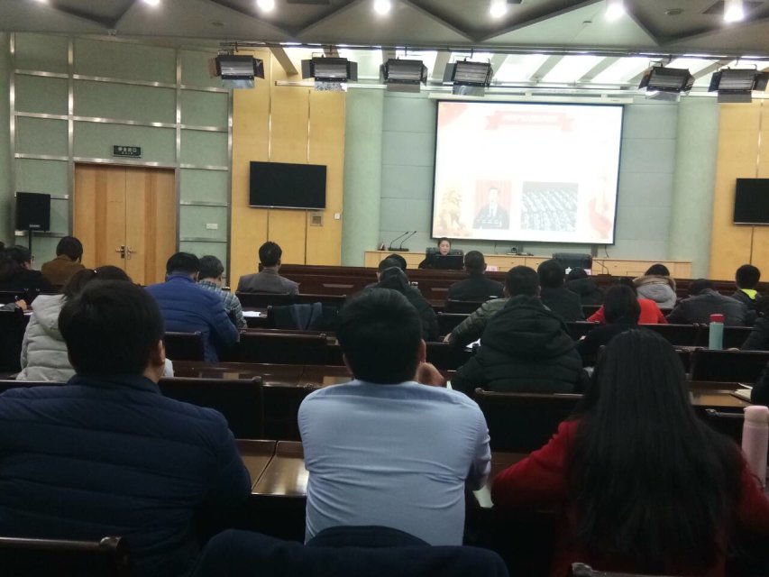 边小玲副教授以《不忘初心牢记使命勇做时代弄潮儿》为题为大家宣讲。首先,她带领大家回顾了党的十九大报告的主题以及十九大报告向我们宣示了我们党要举什么旗,走什么路,以什么样的精神状态,担负什么样的历史使命以及实现什么样的奋斗目标。随后展示了十八大以来的五年是不平凡的五年,党带领全国人民取得了许多历史性成就;最后,边教授和大家分享了十九大报告中党对广大青年寄予的厚望和嘱托,要勇做时代的弄潮儿,在实现中国梦的生动实践中放飞青春梦想,在为人民利益的不懈奋斗中书写人生华章。