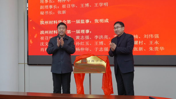 会上,李伟年与李盛为“滨州材料学会”揭牌。