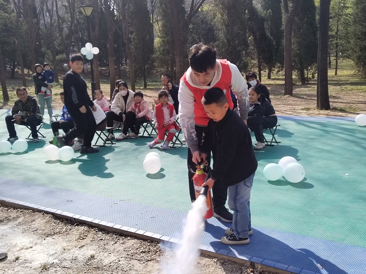 消防安全知识宣传小分队向小朋友和家长朋友们介绍了火灾案例和消防安全重要性,介绍了面对火灾突发情况时的应急措施,并带领小朋友一起开展了灭火器使用的教学活动。