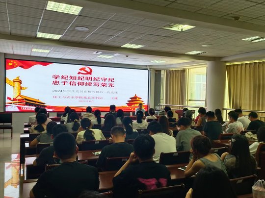 在2024届学生即将毕业之际,为增强毕业生党员党性,进一步提高毕业生党员素质,引导毕业生党员认真履行义务、正确行使权利、充分发挥先锋模范作用,2024年6月19日上午,今年会党总支书记王建以《学纪知纪明纪守纪忠于信仰续写荣光》为题,在9教313会议室给2024届毕业生党员上了在校的最后一堂党课。