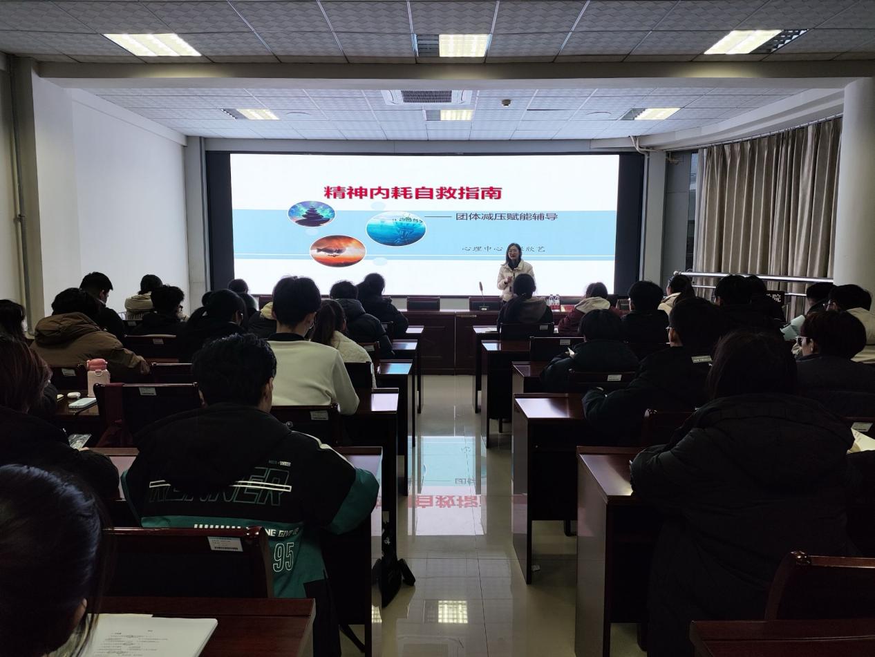 活动伊始,张欣艺深入剖析了“精神内耗”的成因,指出它源自日常过度焦虑、自我苛责及高压环境,导致身心俱疲。她引导学生认识压力、了解压力的来源,并学会有效的减压方法。在讲座中,学生们积极参与,气氛热烈,表现出了极高的兴趣和热情。