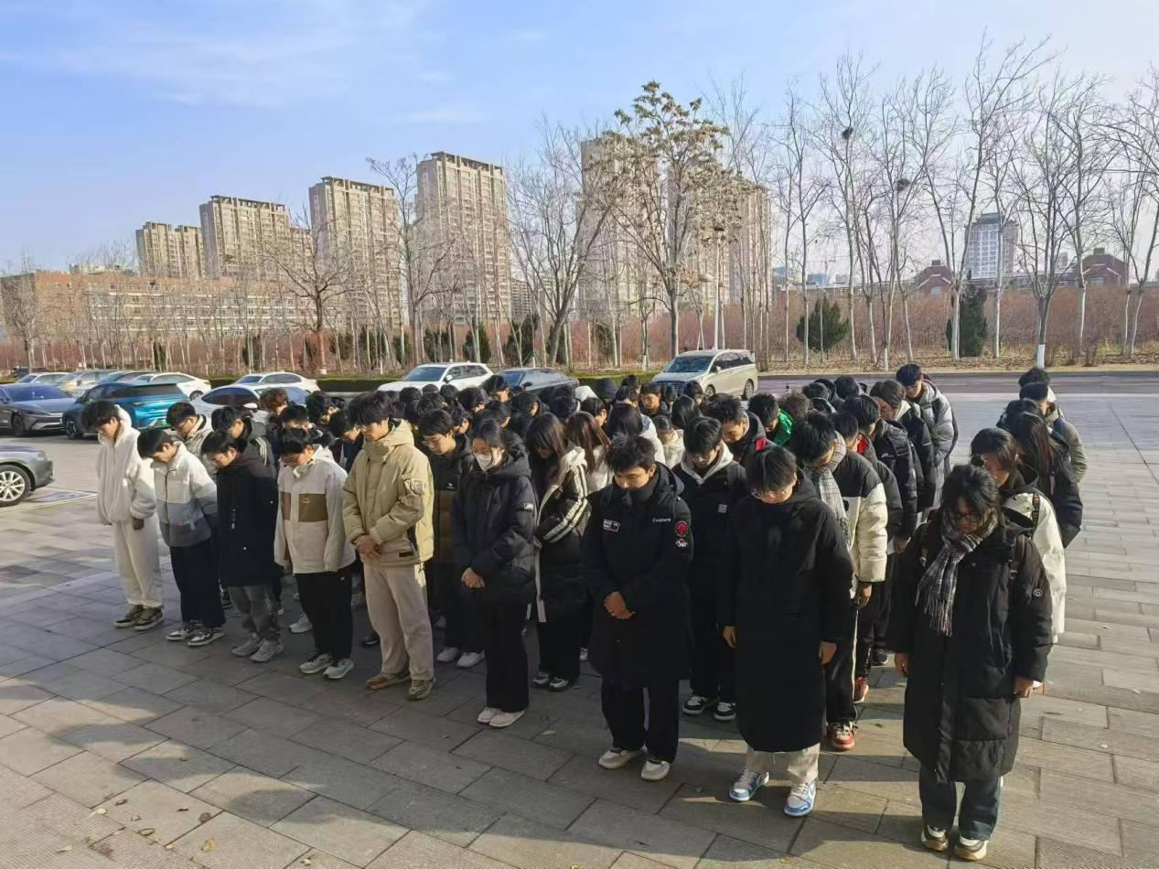 上午,学院举行了庄重的签字仪式。横幅上,“铭记历史,珍爱和平”几个大字格外醒目。师生们有序排队,依次在横幅上郑重签字,表达对历史的深刻铭记和对和平的坚定守护。签字仪式后,全体师生进行默哀,向在南京大屠杀中不幸遇难的同胞致以最深沉的哀悼。默哀现场,气氛庄重肃穆,每个人都沉浸在对历史的沉思中。