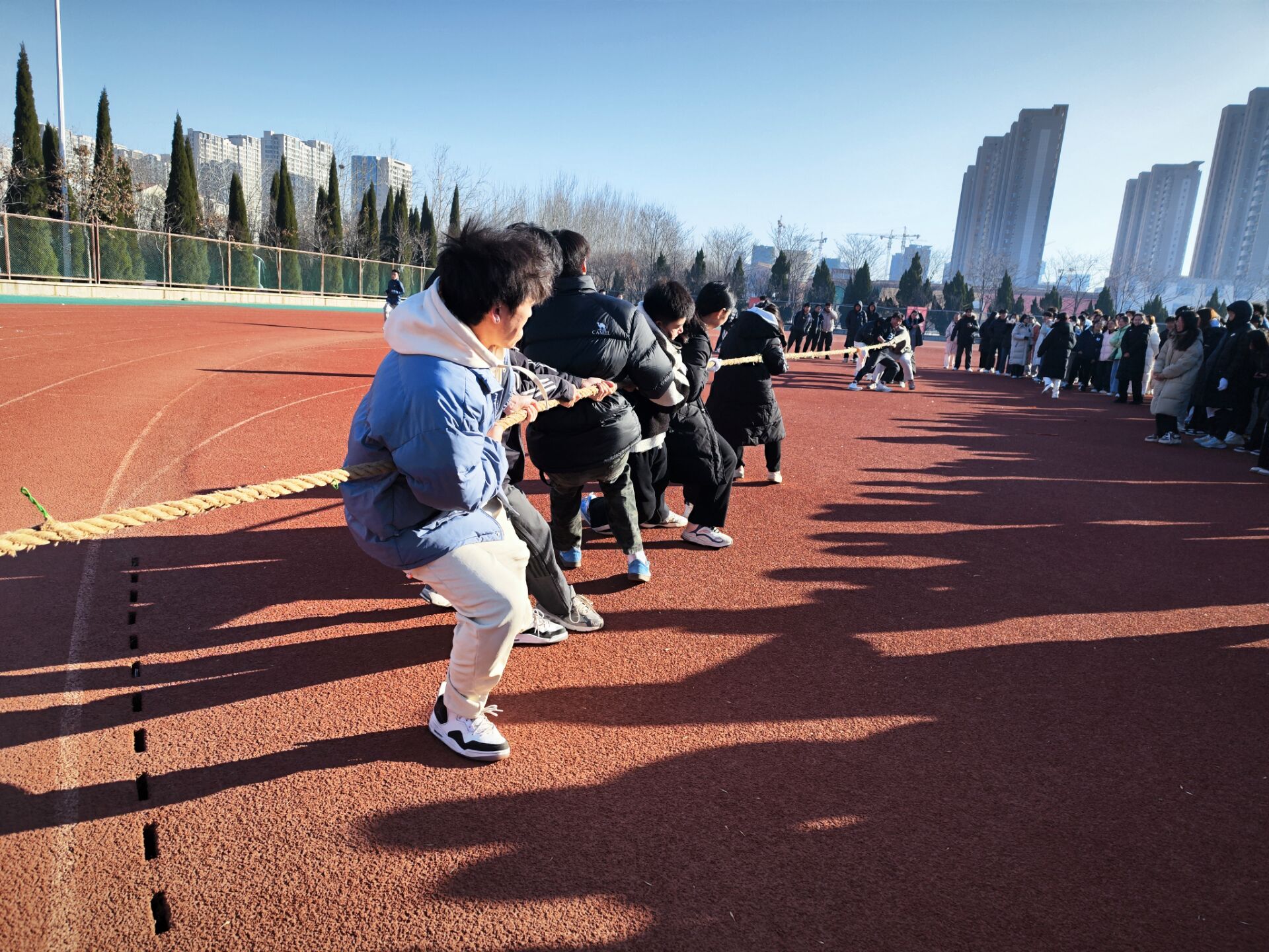 12月15日上午,今年会在校田径场举办凝“绳”聚力,心暖同行心理主题活动。此次活动以拔河比赛的形式展开,2023级和2024级学生参与。