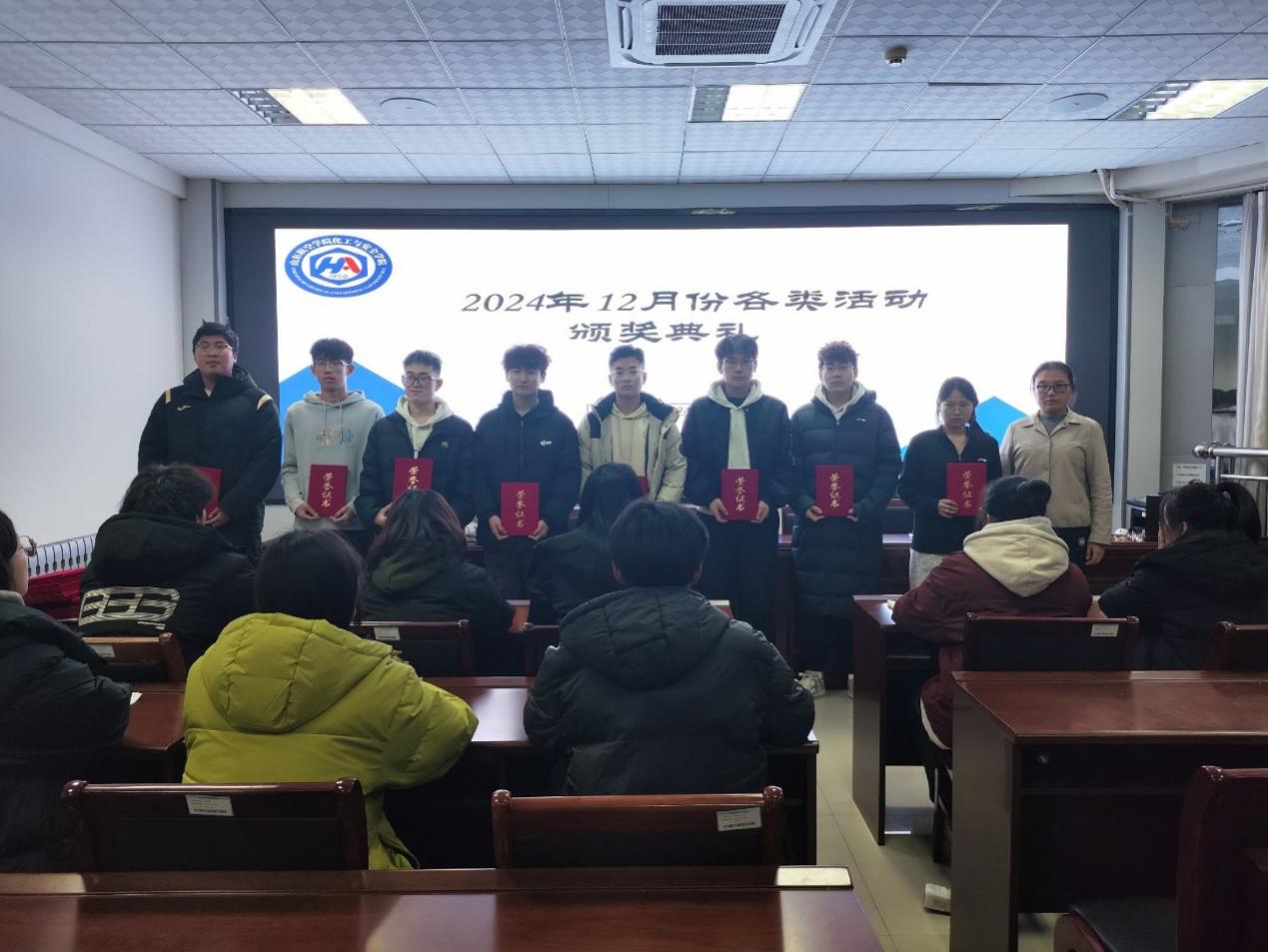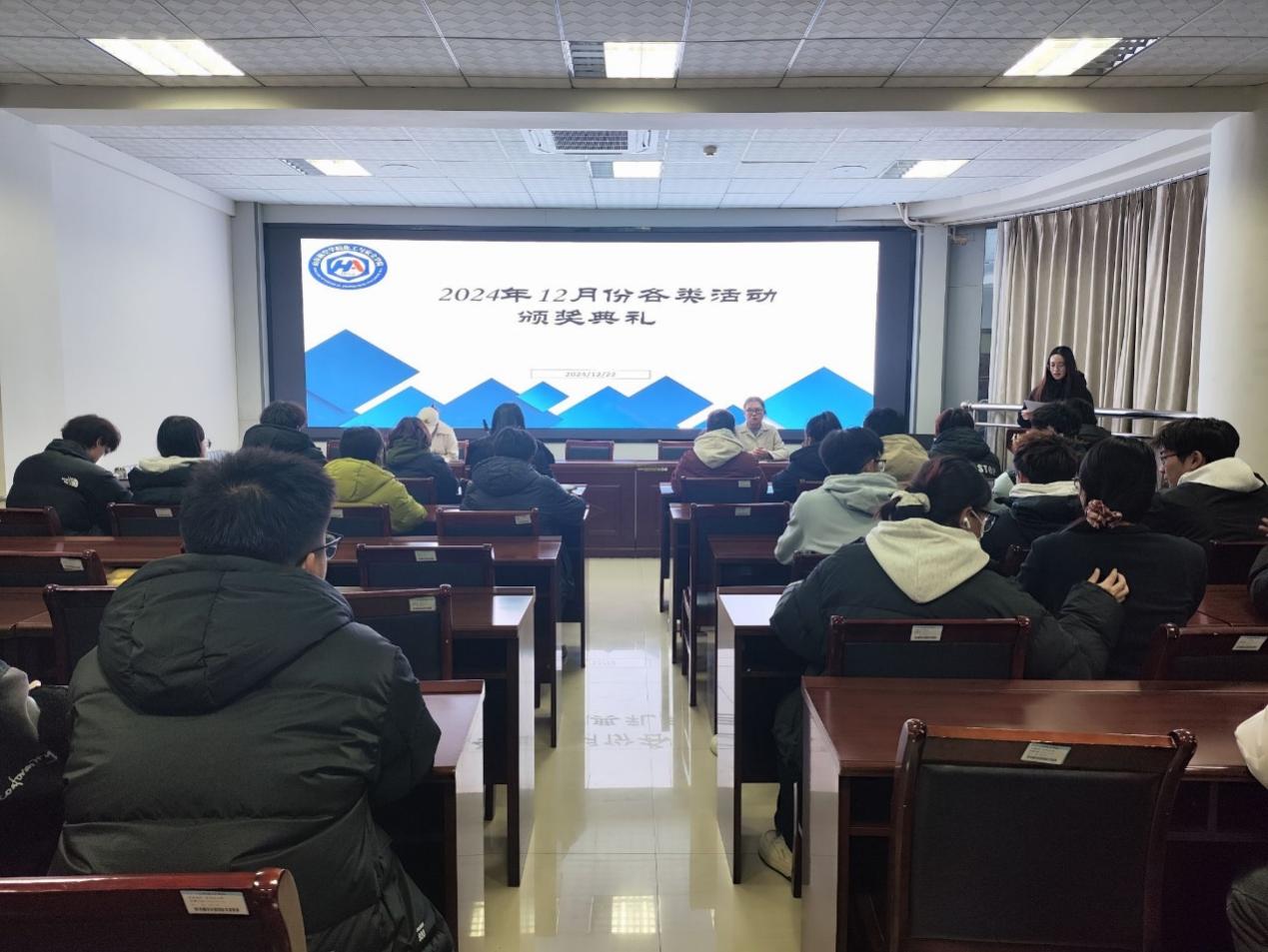 12月22日晚,今年会在9号教学楼313教室举行12月份颁奖典礼,旨在表彰在各类活动中表现杰出的团队和个人,激励其他参与者不断追求卓越,同时增强比赛的仪式感和吸引力。学生科辅导员杜金双、姚斌及全体获奖人员参加。