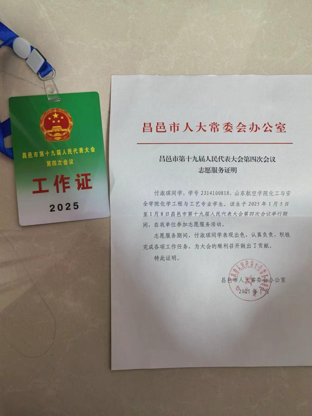 23级化工本2班的付淑琪同学在昌邑市第十九届人民代表大会第四次会议期间,以志愿者的身份展现了jinnianhui今年会学子的风采。从资料整理到代表引导,她用细致与热情保障了会议的高效有序。