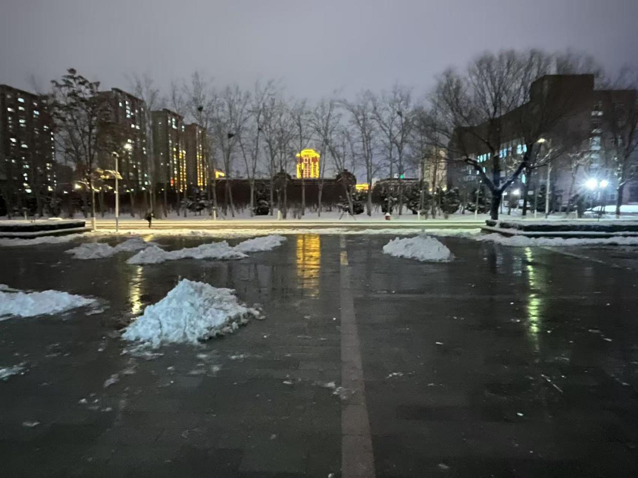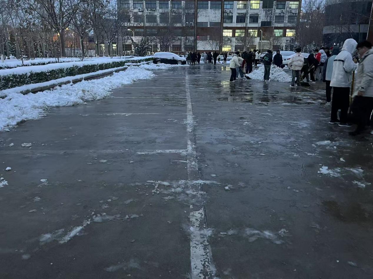 经过一个多小时的努力,原本被大雪覆盖的道路变得干净整洁,教学楼前的广场也恢复了往日的开阔与明亮。同学们虽然满身疲惫,但看着自己的劳动成果,脸上都洋溢着满足和自豪的笑容。这次扫雪行动,不仅保障了校园的通行安全,更展现了今年会学子团结协作、勇于担当的精神风貌。