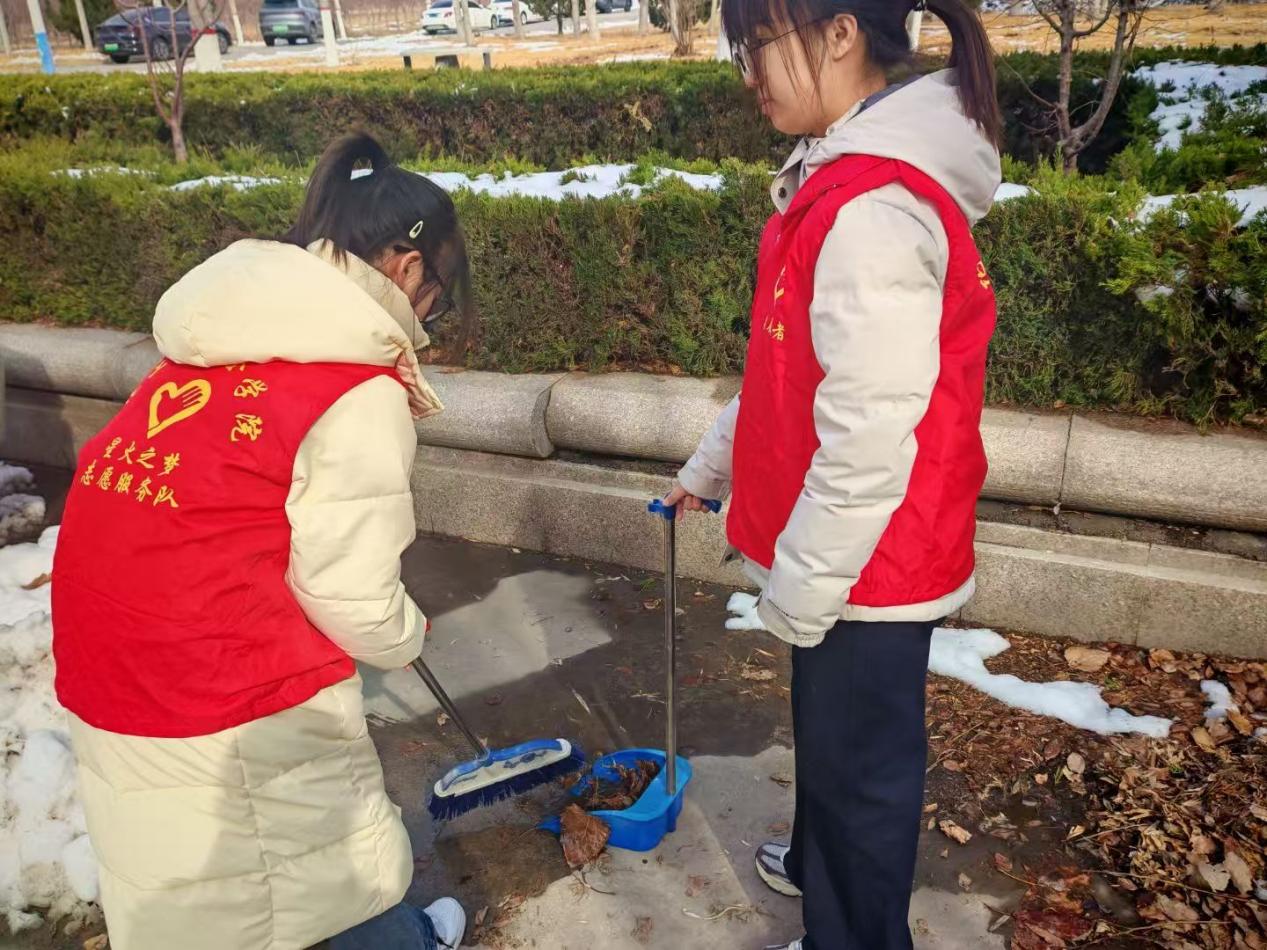 3月4日,9-10号教学楼东广场前,一支由2024级学生志愿者组成的“环境护卫队”迅速集结。百余名学子手持扫帚、垃圾夹、抹布等工具,分片包干,目标明确——对教学楼东广场、楼间道路及停车场区域展开“地毯式”清洁。他们以脚步丈量责任,用行动践行初心,展现出新时代青年的奉献风采。
