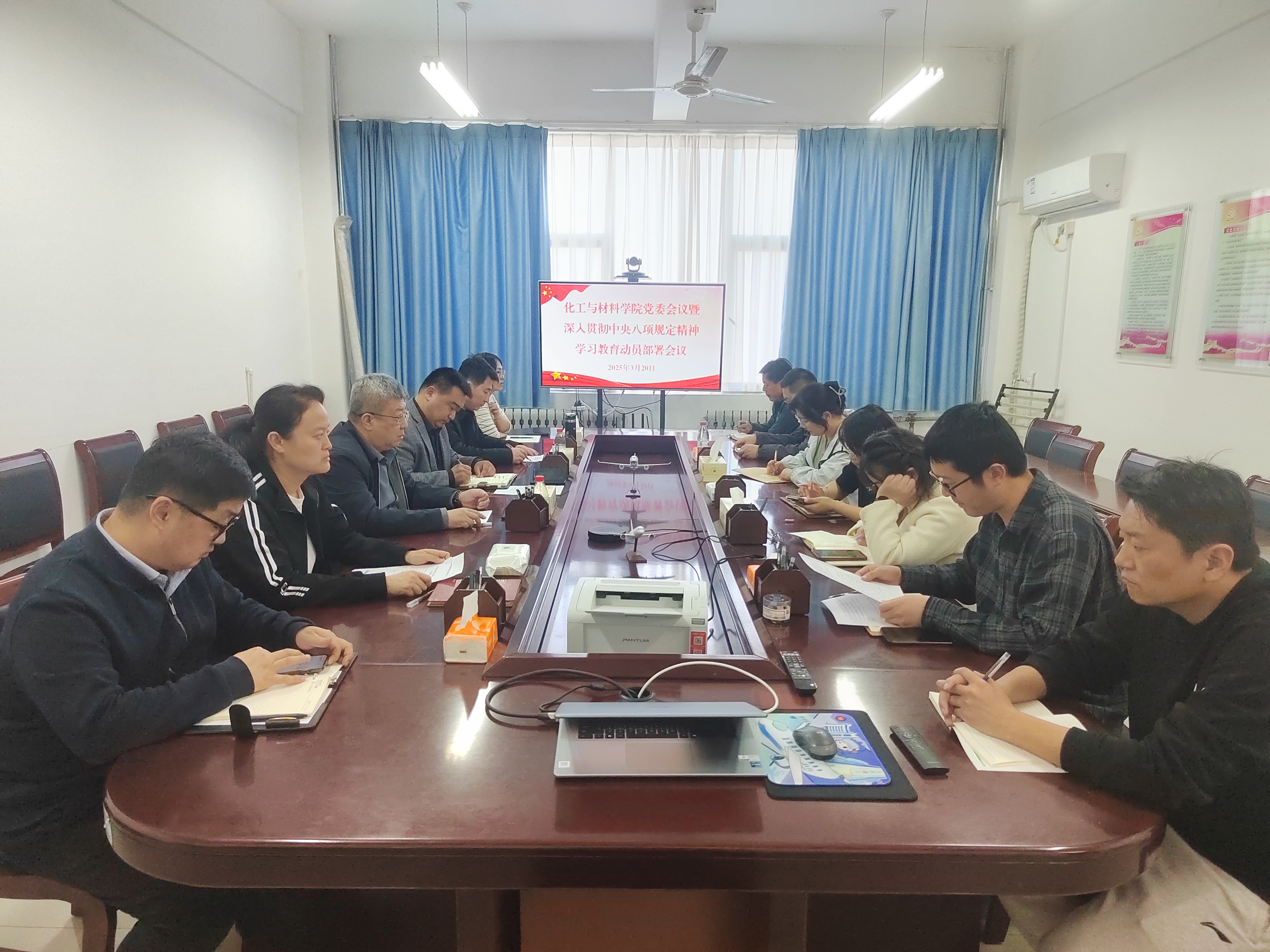 会议学习了党的十八大以来习近平总书记关于中央八项规定的部分重要论述,传达了中央党的建设工作领导小组会议、省委常委会会议暨党的建设工作领导小组会议、学校党的建设工作领导小组会议暨深入贯彻中央八项规定精神学习教育动员部署会议精神,对全院开展深入贯彻中央八项规定精神学习教育作出了安排部署。