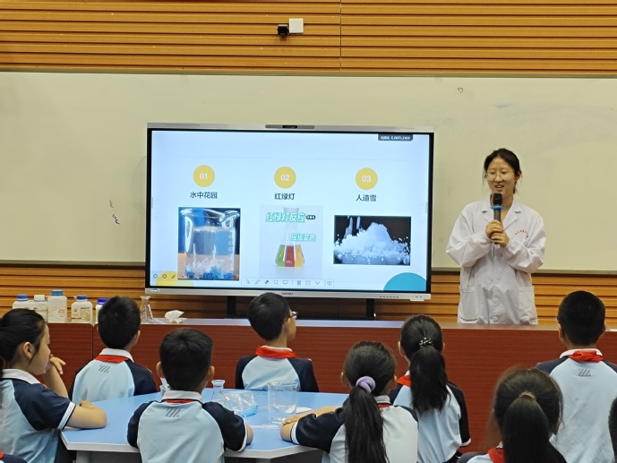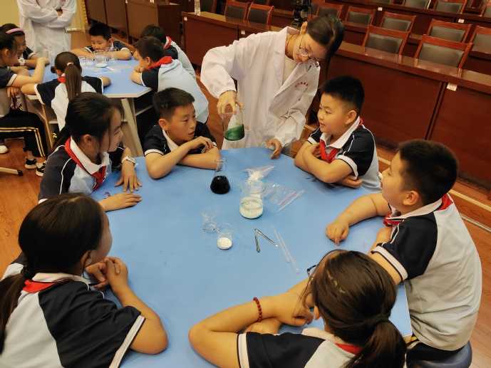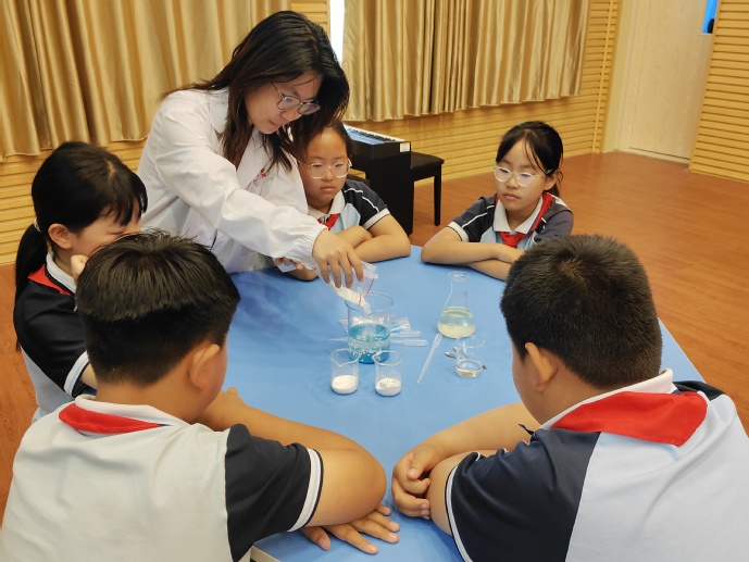活动中,15名志愿者化身“化学导师”,带领同学们分组操作、记录现象、交流猜想,在“观察—提问—验证”的过程中培养科学思维。