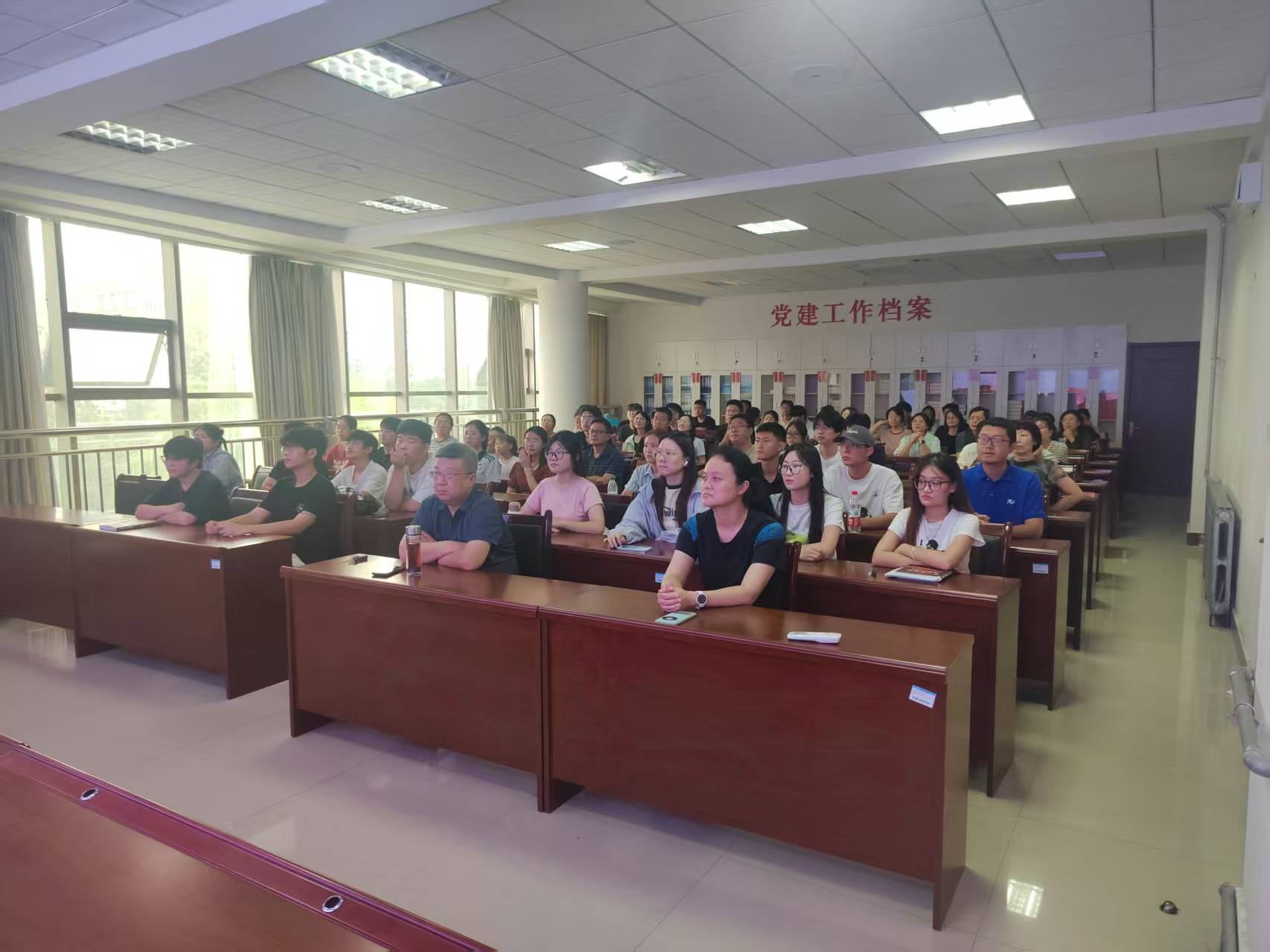 虽值开学伊始,但师生参与热情高涨。阅兵仪式开始前半小时,会议室已座无虚席。许多师生提前抵达,静候仪式开始。到场师生中,既有学院领导、中层干部、各学科教师,也有满怀激情的青年学子,大家精神饱满,着装整洁得体,展现出今年会师生良好的精神风貌和对此次盛事的高度重视。