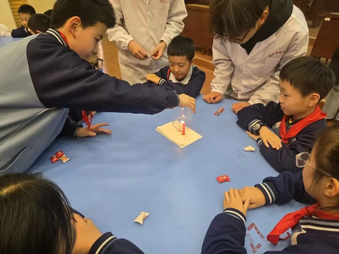 活动精心设置“空气击破炮”“油锅灭火实验”“酒精灭火实验”“分层灭火实验”四大互动环节,将抽象的消防原理转化为直观的实践操作。每个实验环节均配备专业志愿者讲解实验目标、详细步骤及科学原理,引导学生在动手实践中精准掌握隔绝氧气、降低温度等火灾扑救基本方法,同时重点强调“油火忌水”等关键安全常识,纠正日常生活中的消防认知误区。活动过程中,学生们积极参与实验设计与操作,在团队协作中提升观察分析能力,现场学习氛围浓厚。